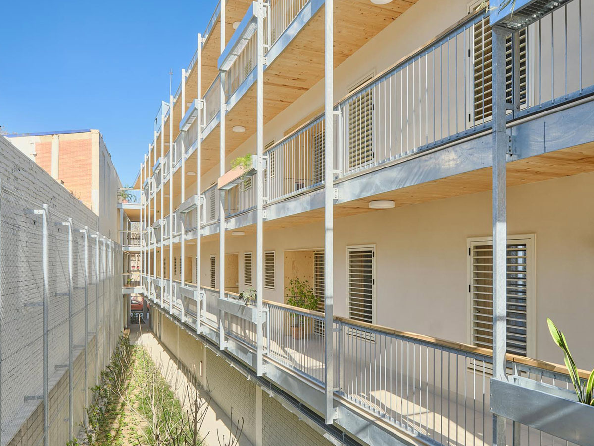 Aquesta edificació és una de les primeres construccions modulars amb fusta CLT promogudes per l'Institut Municipal de l'Habitatge i Rehabilitació de Barcelona. El projecte inclou la construcció completa de l'edifici, que ha estat dissenyat per minimitzar el consum energètic, i incorpora una instal·lació fotovoltaica a la coberta per generar energia renovable.