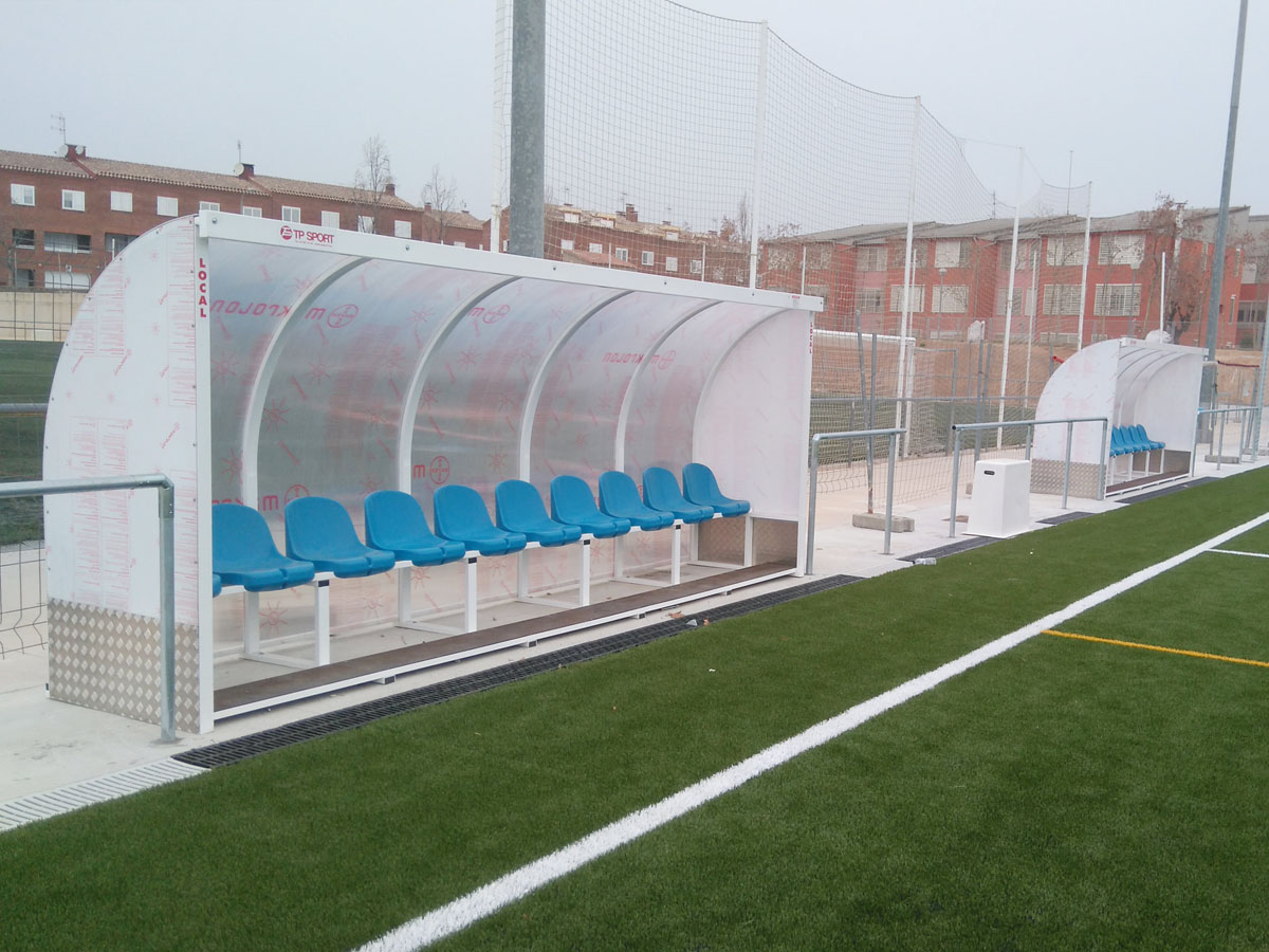 Instal·lació de nous equipaments esportius per als camps, com porteries, banquetes i sistemes de delimitació.