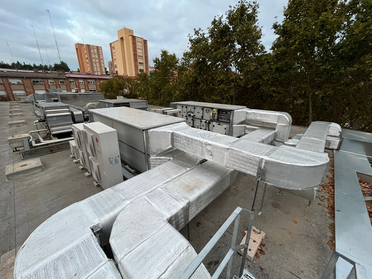 Debido a la presencia de un gran colector soterrado de 2,80 m de radio que cruza la parcela en diagonal, se ha diseñado una cimentación especial mediante pilotes y pórticos, evitando cualquier carga sobre la infraestructura existente y asegurando la estabilidad del edificio.