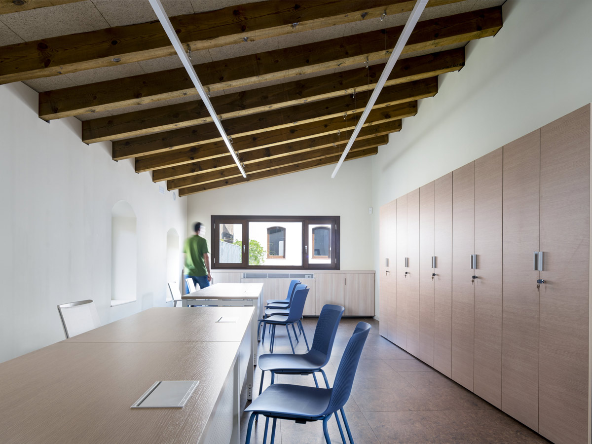 La intervenció inclou el reforç estructural de les bigues de fusta per garantir l’estabilitat de l’edifici, així com la creació d’un nou nucli d’escala i ascensor per millorar l’accessibilitat i la funcionalitat de l’espai. També es preveu la rehabilitació integral de les façanes, respectant els materials i l’estètica originals, i una nova distribució interior per adaptar l’edifici als requisits del programa establert.