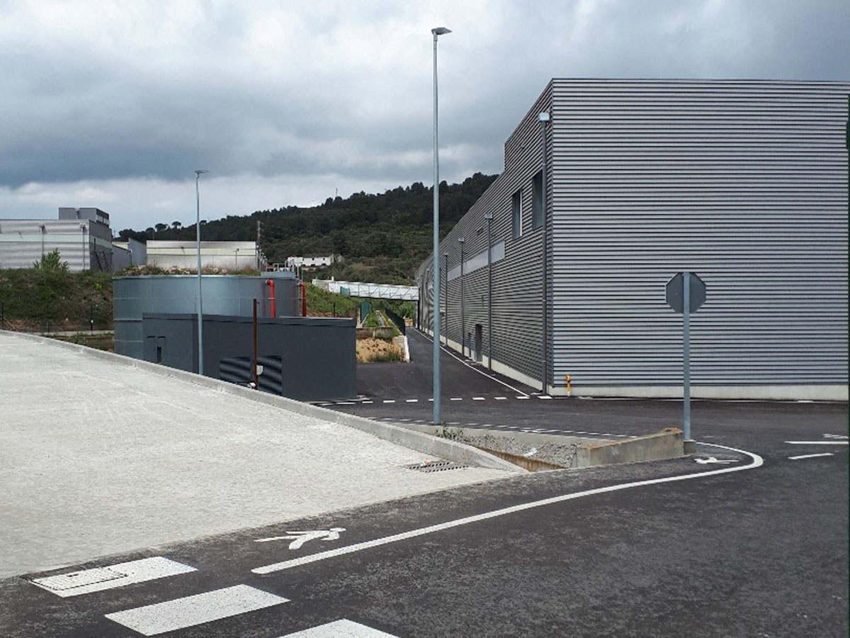 Execució de l'urbanització perimetral d'una nova nau industrial, que inclou treballs previs i demolicions, així com la instal·lació de xarxes separatives d'aigües residuals i pluvials. Es durà a terme la connexió a la xarxa de gas, la instal·lació de subministrament d'aigua, incloent grups de bombeig i dipòsits soterrats per a la distribució d'aigua. També s'instal·laran les xarxes d'electricitat i telecomunicacions, juntament amb el sistema d'enllumenat públic. Es realitzarà la pavimentació i senyalització de la zona, l'enjardinament i la instal·lació de la xarxa de reg. Finalment, s'adequaran els murs i tancaments perimetrals.